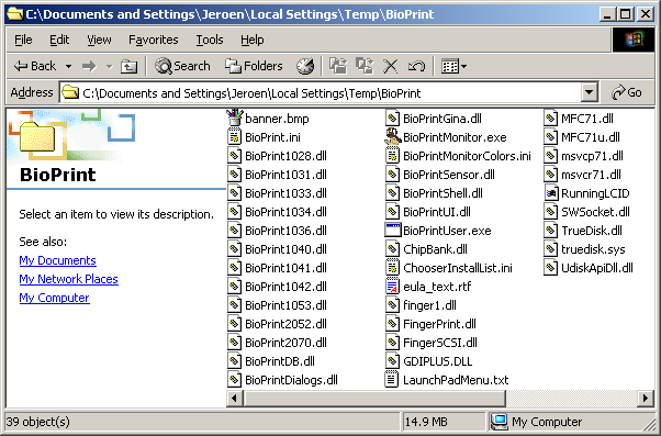 Instead of looking for it, I decided to go the same route as I did at the first stick. I looked at the dll-functions the program called, and sure enough, I found a few spots that seemed to call a function that checks if the scanned fingerprint is the right one. Hacking these did seem to do what I wanted at first. It didn't do exactly what I wanted, though: while whe hack looked like it got accepted by the user interface, it ended up with the wrong key being passed to the decryption routine in truedisk.dll.